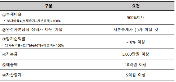 ❍ 2025년도 결산 재무제표 기준* 다음의 조건 중 3가지 이상을 만족하는 기업